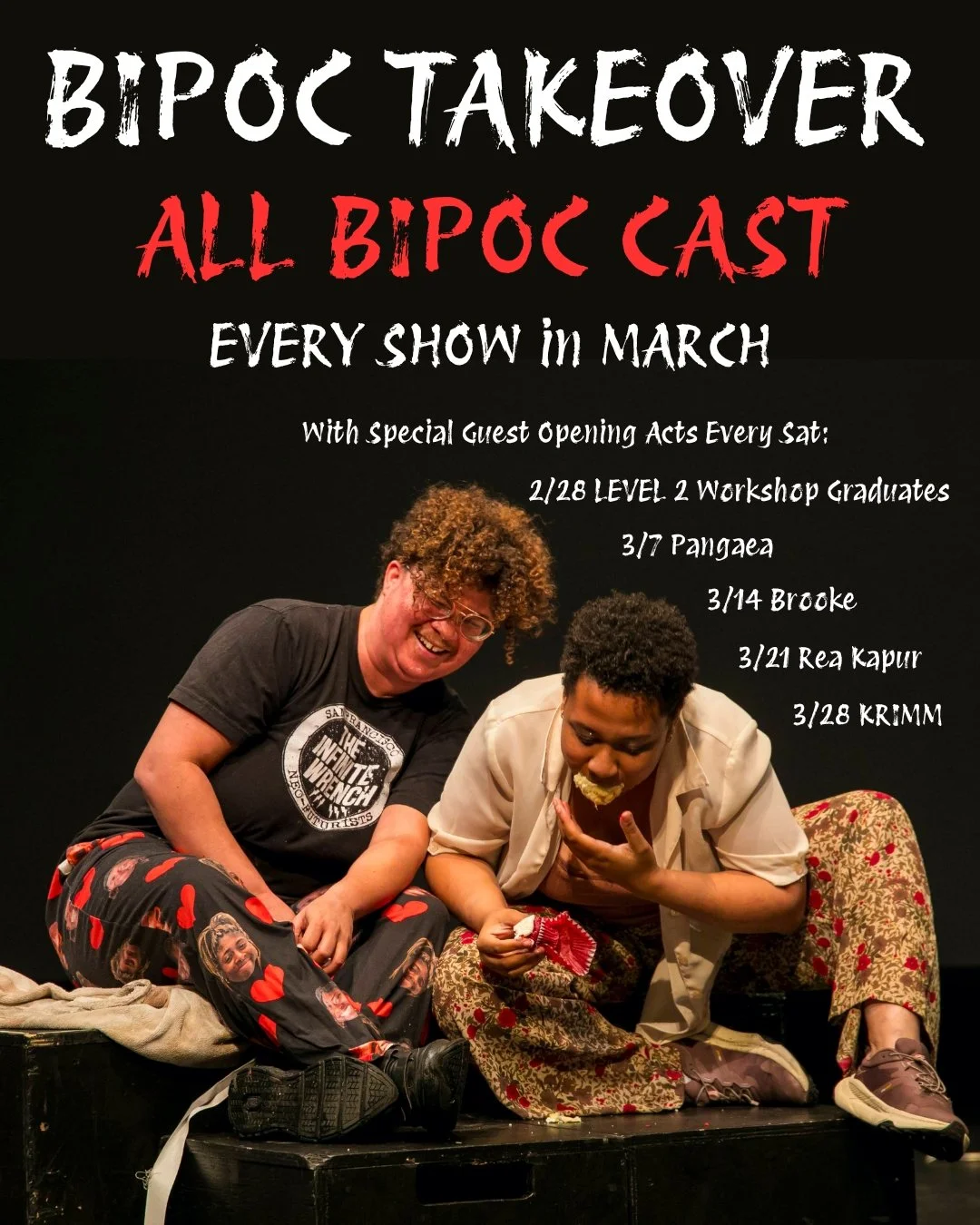 All month long—the entire month of March—we're flipping The Infinite Wrench and serving it BIPOC TAKEOVER style. Same beloved chaos. Same beautiful mess. Same show that's never actually the same show. But now? Every single performance features an all-BIPOC cast.